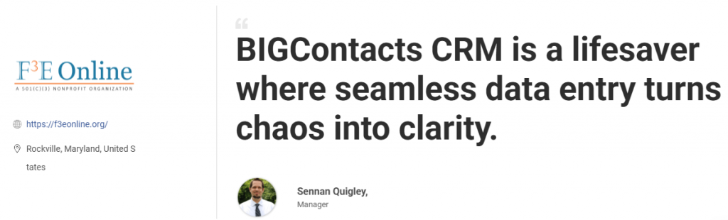 Here’s what Sennin Quigley from the Foundation for Financial Education (F3E) has to say about his experience using BIGContacts:
